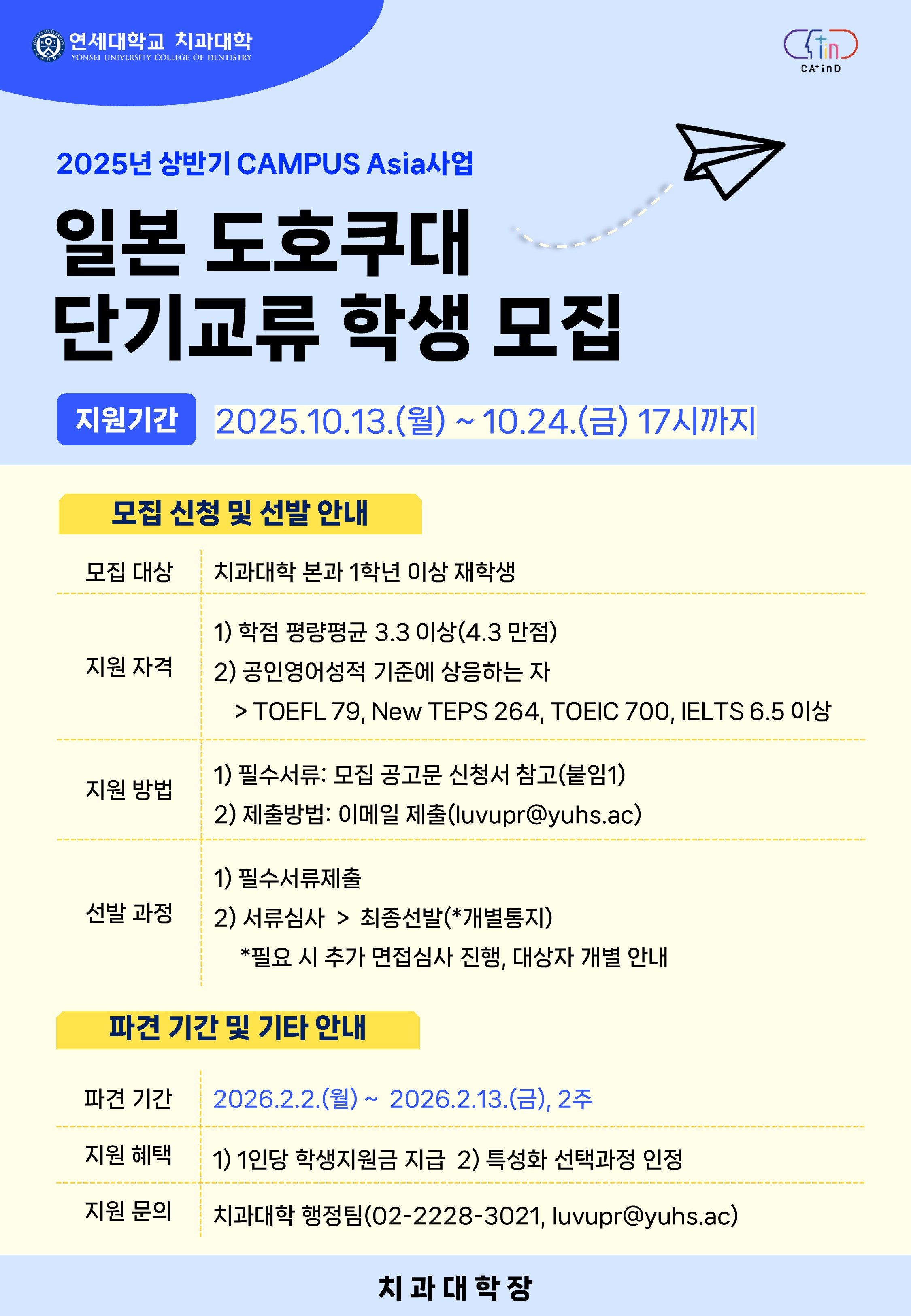 • 신청대상:치과대학 본과 1학년 이상 재학생
